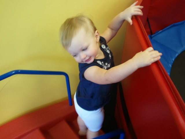 Let me see what else... Hmm.. Your gross motor skill are way ahead of the game too. Your daddy used to call me a kangaroo when I was pregnant with you, and I think he was on to something, because you hop like a kangaroo, like you can hop all the way down a hallway in great big leaps, you can jump up and down all waking hours of the day (and do). You love to run and climb. You understand a lot of action words, you know how to "sit down" and "stand up". You know how to "stop", "run, run, run", "jump, jump, jump", "slow down", "lay down", "kick" and "step up/step down". But by far your favorite is jumping. We hear comments all the time about how much you jump and how amazing it is that you can first of jump with two feet, but also that you can move while jumping and that you don't stop jumping, like ever. Girl you were born with springs on feet. Are you a future Olympian? Who knows! But I know you have a passion for it already. Because when I say you don't stop jumping. You.Don't.Stop.Jumping.Ever.Not.Even.When.Watching.TV.